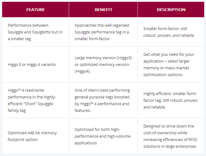 The Alien Technology® “Short” RFID inlay is a narrower, high-performance member of the Squiggle® family.